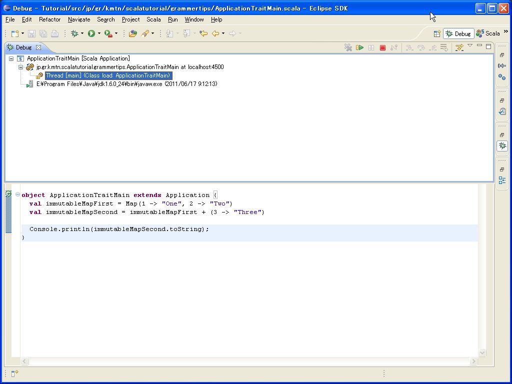 val immutableMapSecond = immutableMapFirst + (3 -> "Three")